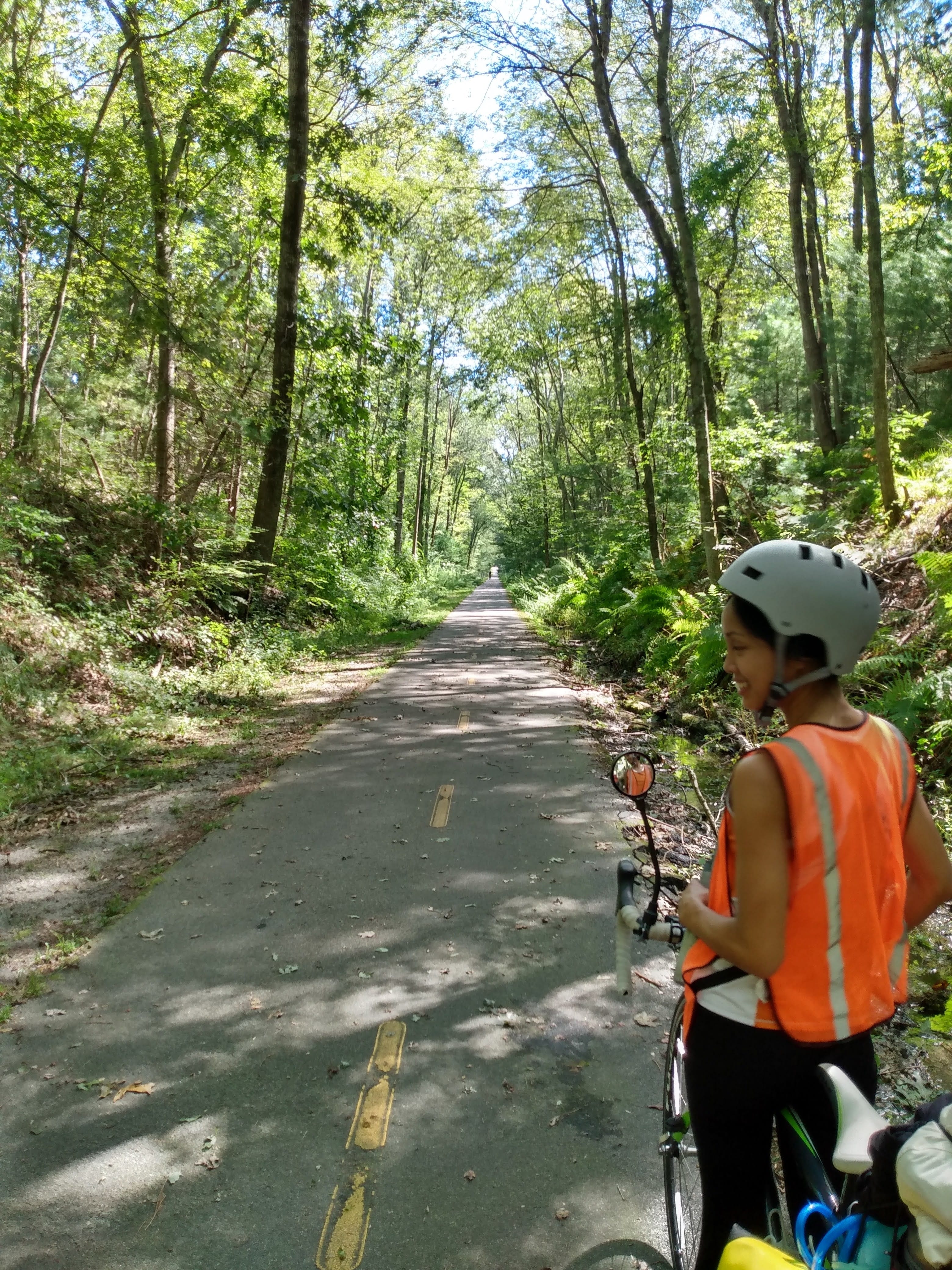 Kathleen and the cool morning sent us off with ginger snaps and perfect biking weather after a lovely breakfast on the Brown patio. Today's route took us through some elevation in a few small towns, followed by a scenic trail sprinkled with wooden bridges. We stopped at REI and a local library to take care of errands and meandered in Roger Williams Park until we reached Providence.