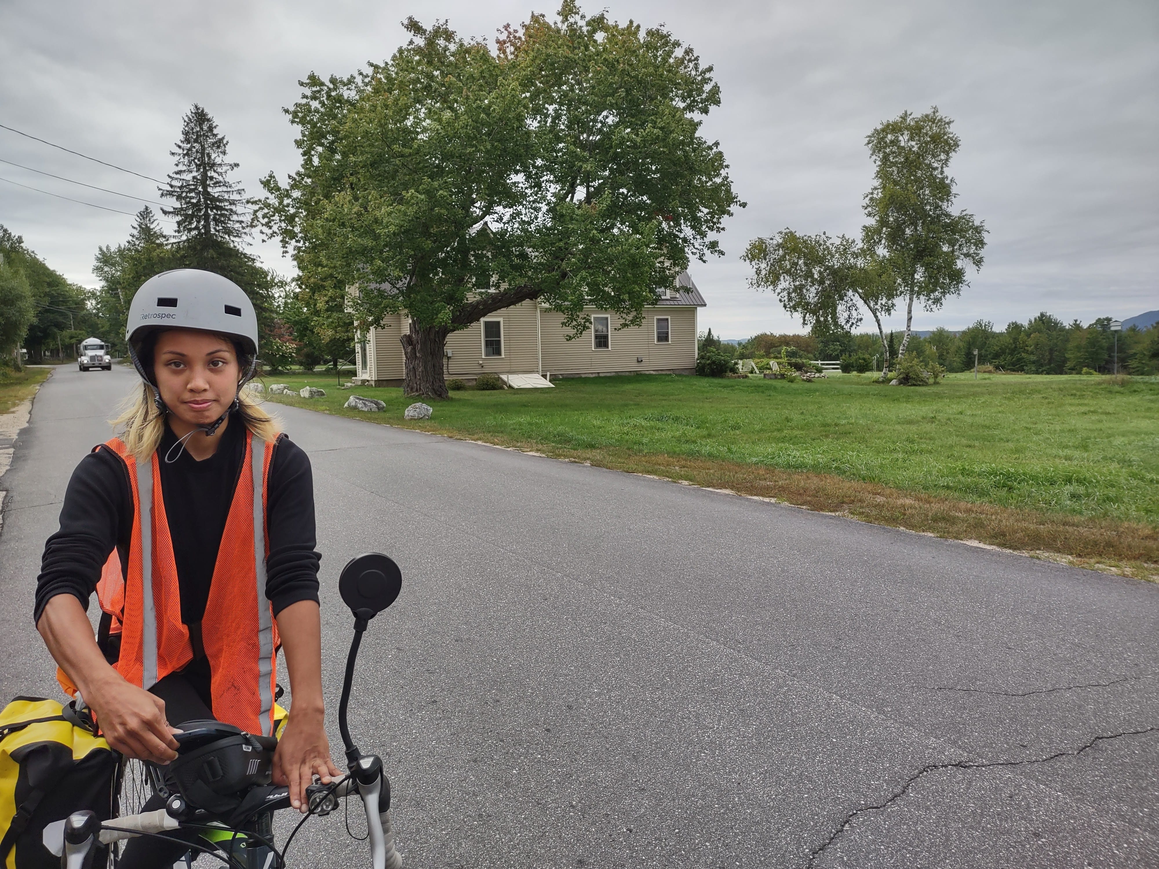 Continuing on, we biked past signs warning of moose crossings but didn’t manage to catch any in real time. In the distance, we could see beautiful mountains (where they belong), but we got a little too personal with at least one steep hill.