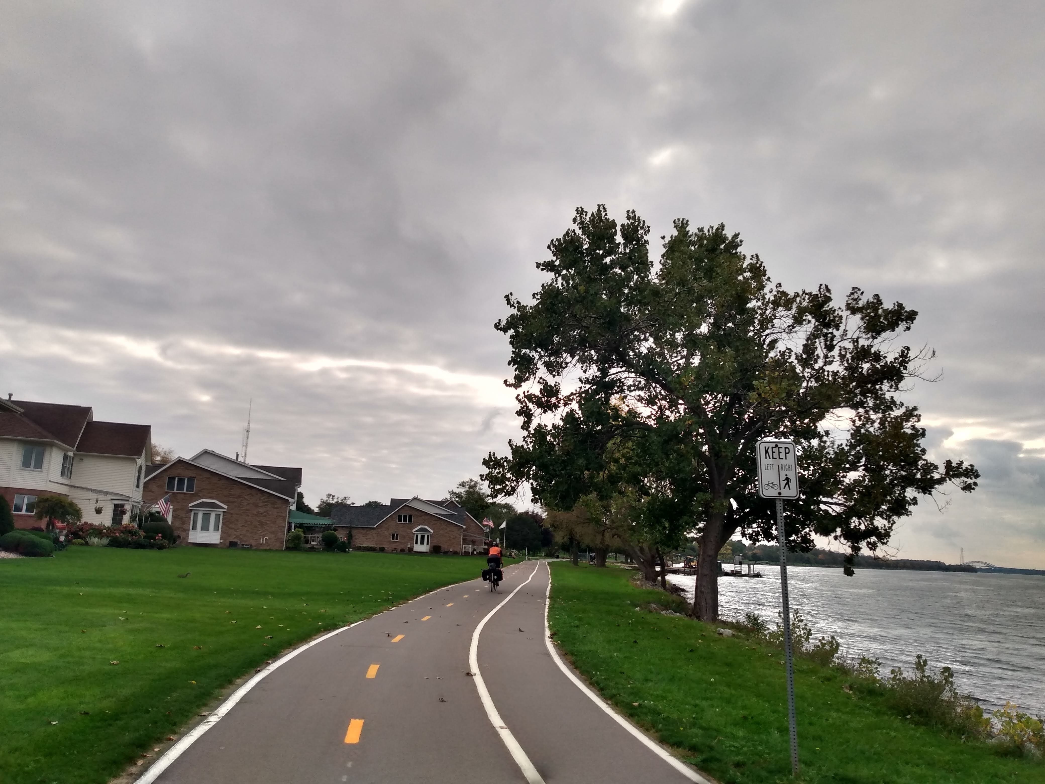 We enjoyed the scenery following the Niagara River to Tonawanda and Buffalo. Our next hosts had provided directions that took us on some great trails, one of which was our beloved Empire State Trail! This would be our third time on it (first in Manhattan and then again in Rouses Point). It was smooth sailing until we ran into our first obstacle of the day: a bridge closure whose detour added a few more miles to route. No problem, we thought. Then the rascally flats began. Camille got a flat. Greg got a flat. Camille got another flat.