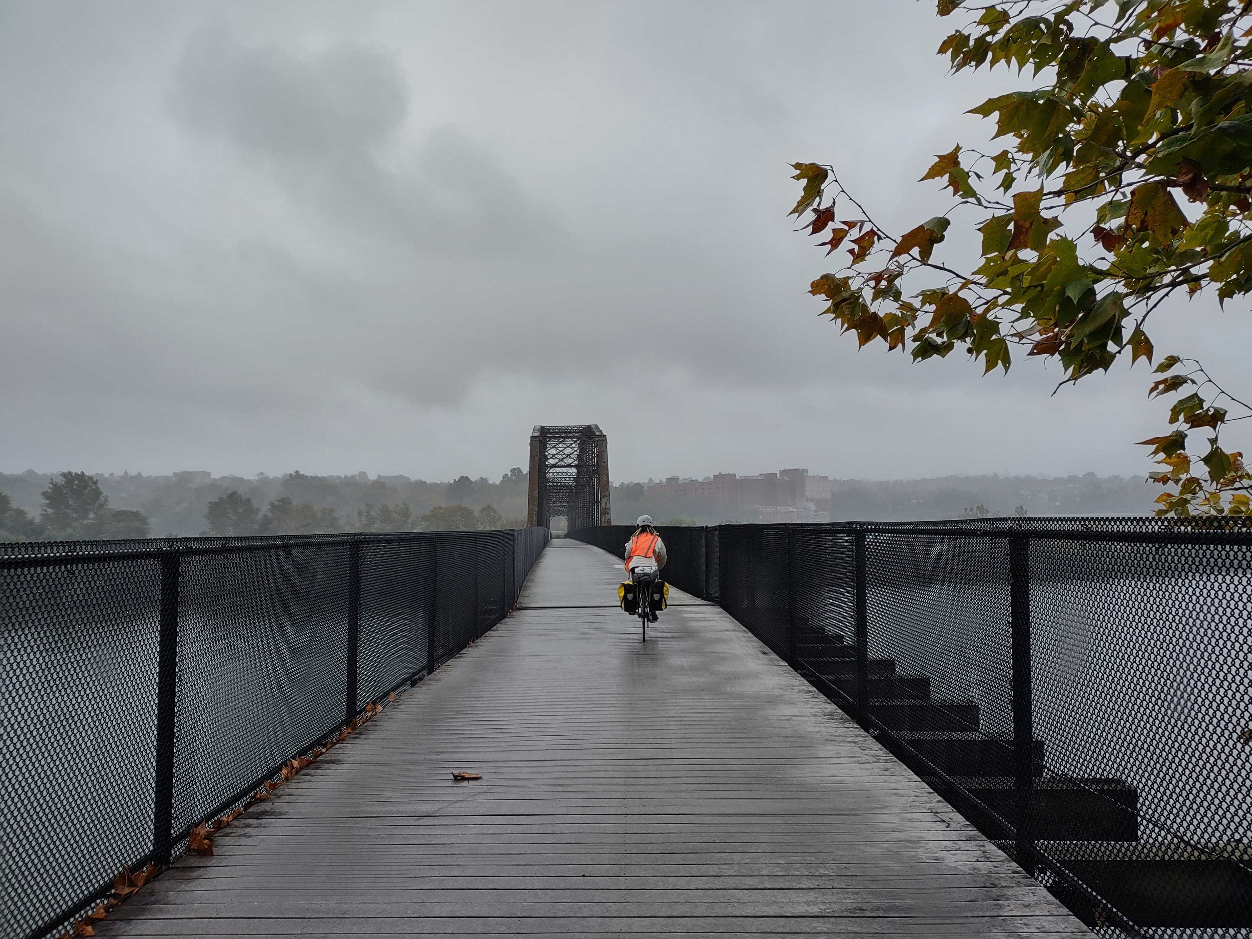 A light rain perpetuated throughout the day which started out nicely but quickly became dreary once the temperature dropped and winds came in. Despite all that, bike tourists populated the trails! We'd never seen so many and were thoroughly impressed. The surrounding community seemed quite supportive of two-wheel culture; volunteer groups maintained the trails, and homemade signs on coolers outside some homes announced free water bottles for bikers and bikers.