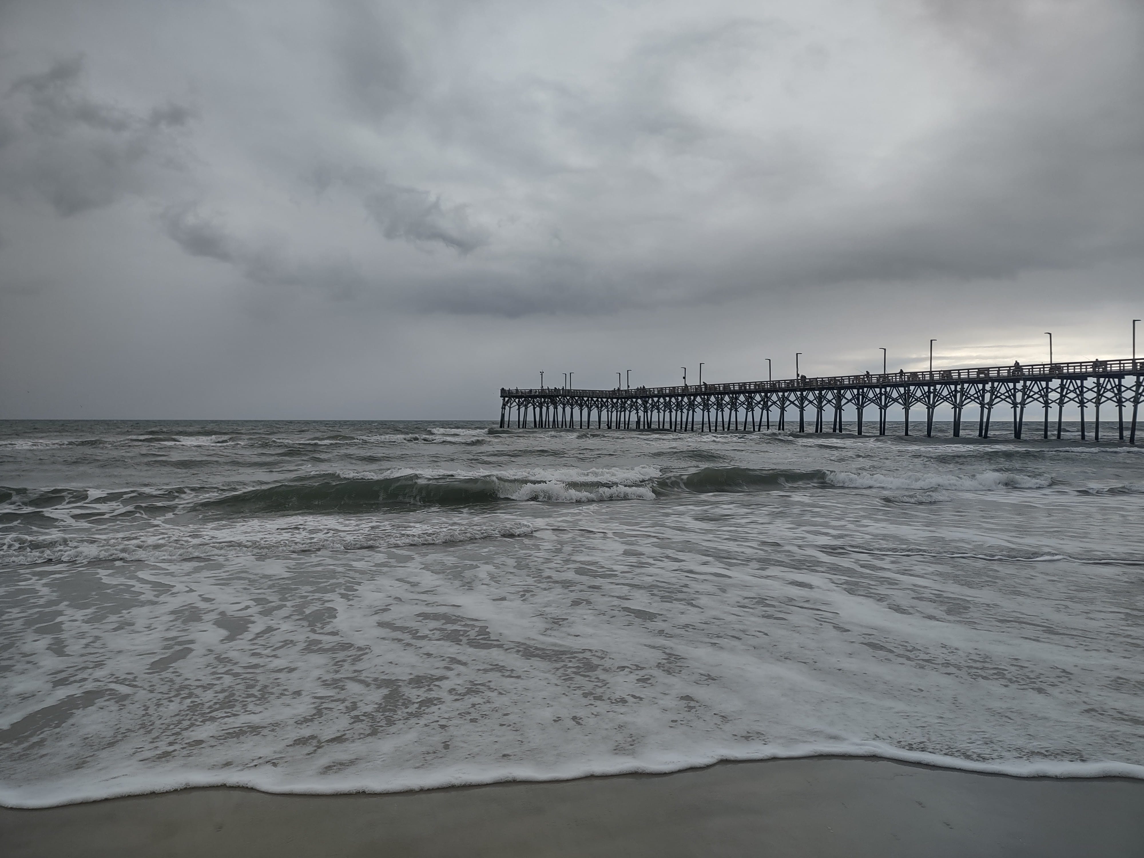 Passing over the bridge to Topsail Island, the view was absolutely beautiful. Just after the bridge we decided to stop and talk for a bit. We'd both started the day pretty grumpy and decided that our current timeline and pace had been leaving us tired, rushed, anxious and grumpy. We decided to slow down and commit to only Charleston (rather than Savannah) before Thanksgiving. We decided to stay the night just a bit further on down Topsail Island in Surf City.