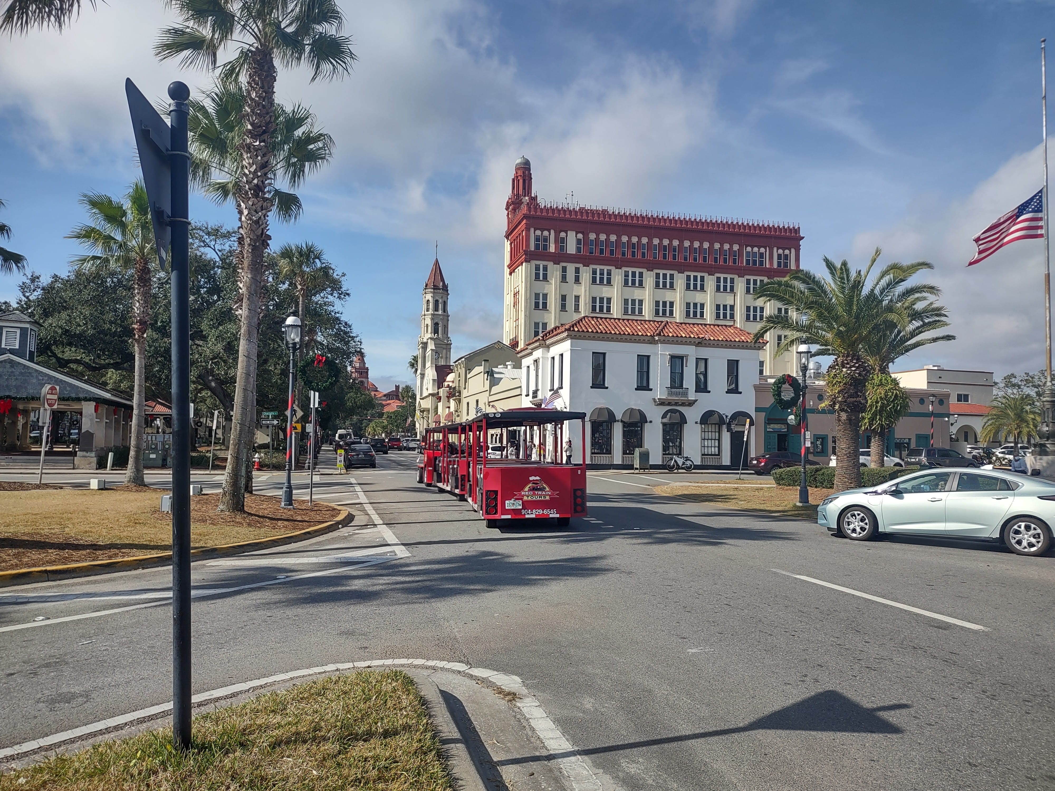 The next (flat) 15 or so miles flew by. As we passed Flagler Beach, we knew we had to stop. The area was very reminiscent of our favorite areas along the coast of Maine. The road along the beach had completely unobstructed views and a nice rocky barrier separating the beach from the road. On the side opposite from the beach, the road was sparsely dotted with reasonably sized houses and small businesses. Upon closer examination, we saw the sand had an interesting orange color to it, much coarser than the usual white granular shores. We also realized that the rocky barrier was actually comprised of collections of shells smushed together, held together by limestone (called coquinas). Camille claims this is her favorite beach ever.