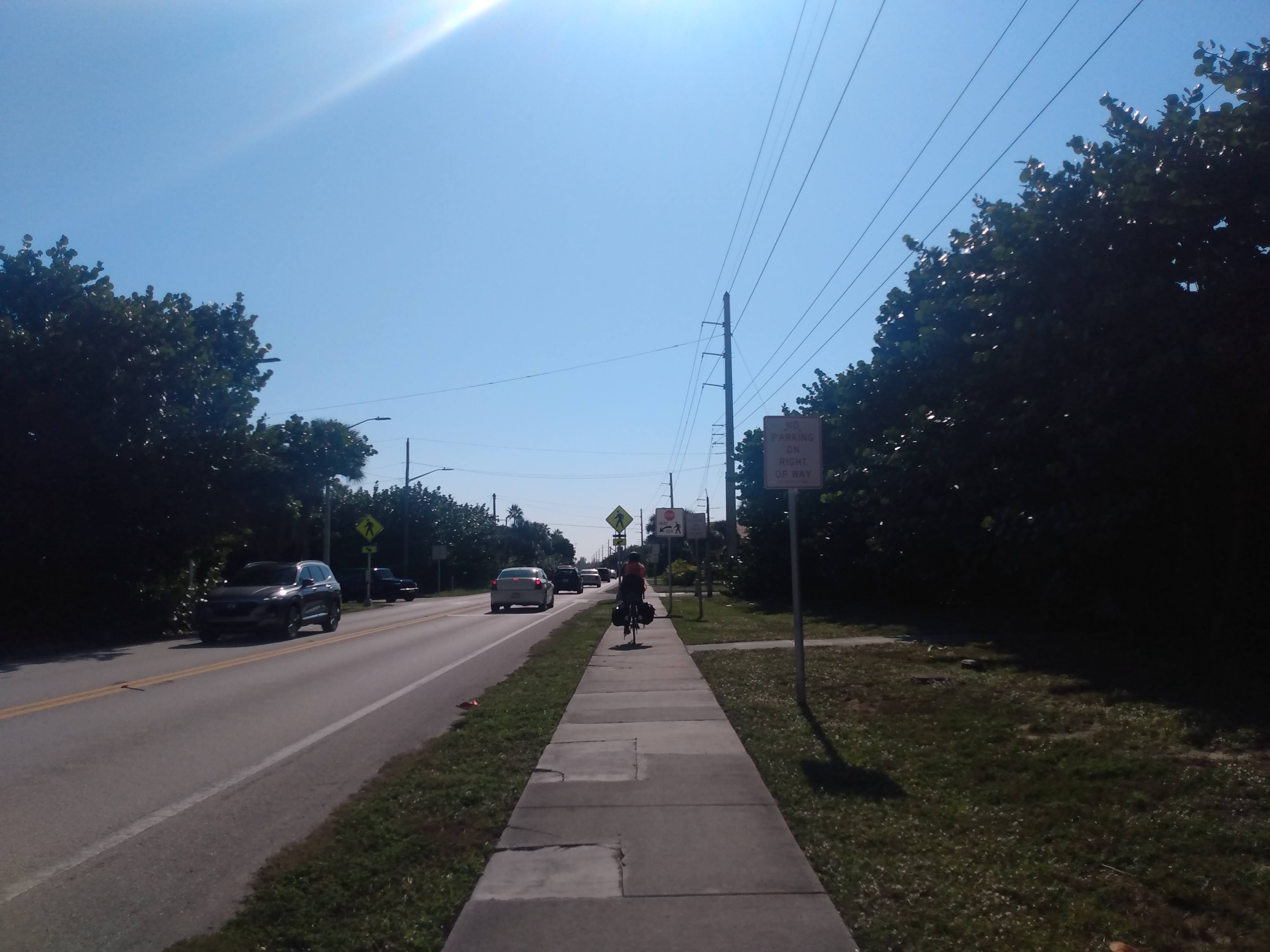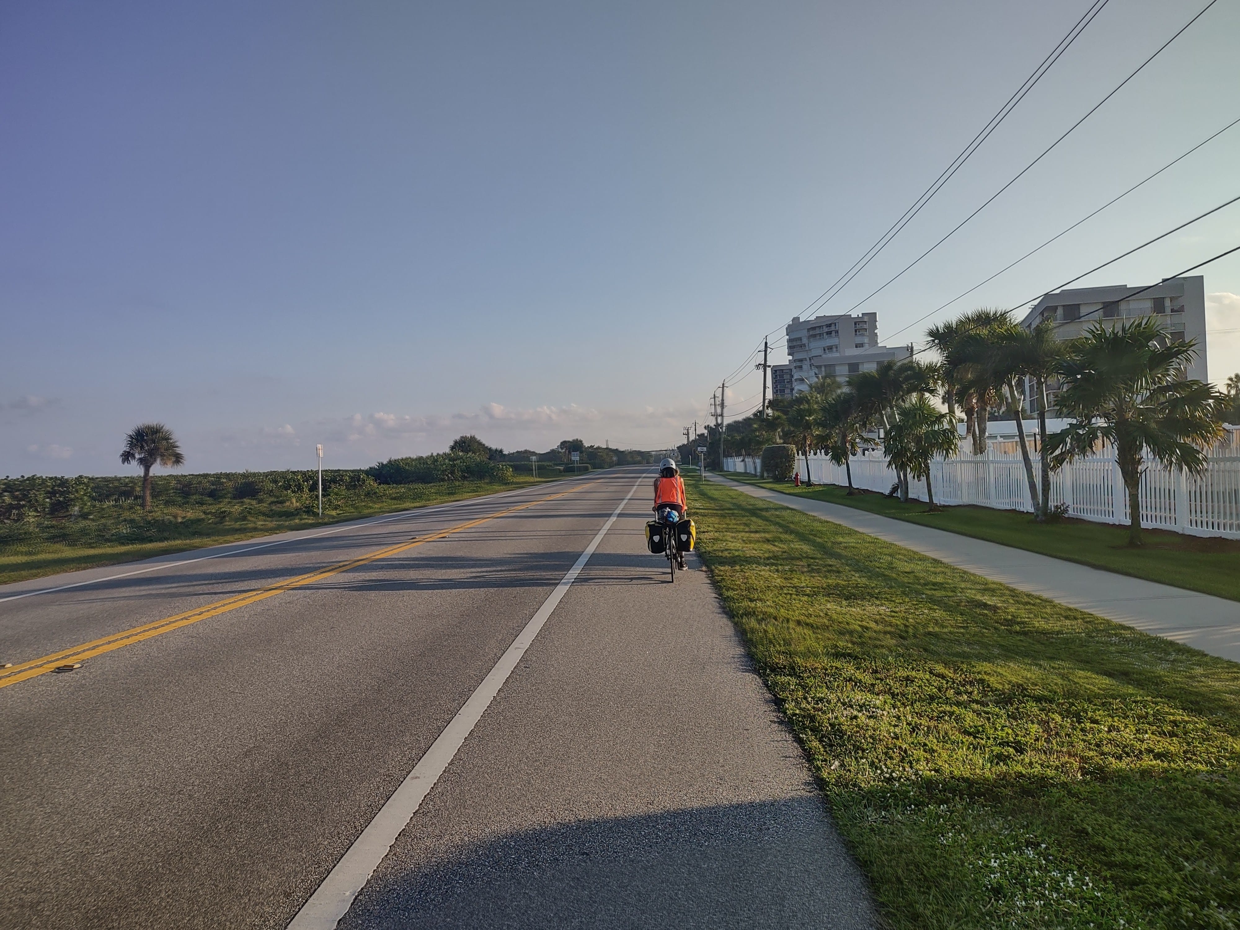 We dashed forward with only 3 hours left of daylight and 37 miles to go. The first 30+ miles were still on barrier islands and they passed pretty quick. After maybe 15 miles we were treated to the nicest views of the day, especially while crossing the bridge over the Sebastian Inlet. From the top of the bridge, we could see dozens of people playing in the water of a lagoon to our north west. After the bridge, we were treated to a nice long stretch where we had great views of the intracoastal waterway right from the trail. Eventually, we were back to biking through areas with houses, businesses and even some massive hotels/apartments.