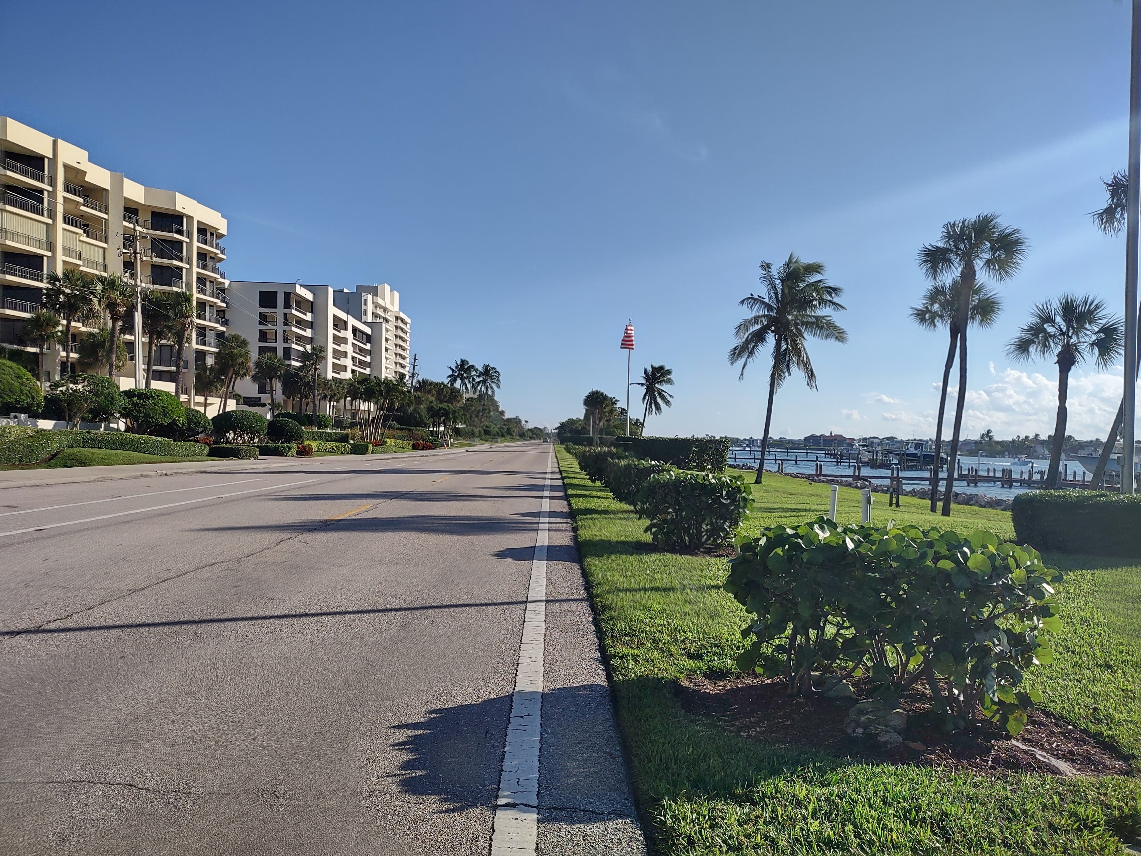 We set out 9:30-ish by retracing our route back north and crossing onto South Hutchinson Island. Everything seemed really clean, well manicured and well planned and we enjoyed cycling through multiple rotaries. There wasn't too much interesting scenery along this stretch with woods on either side again blocking our view of the water, but we did get to share the bike lane with runners participating in some type of event.