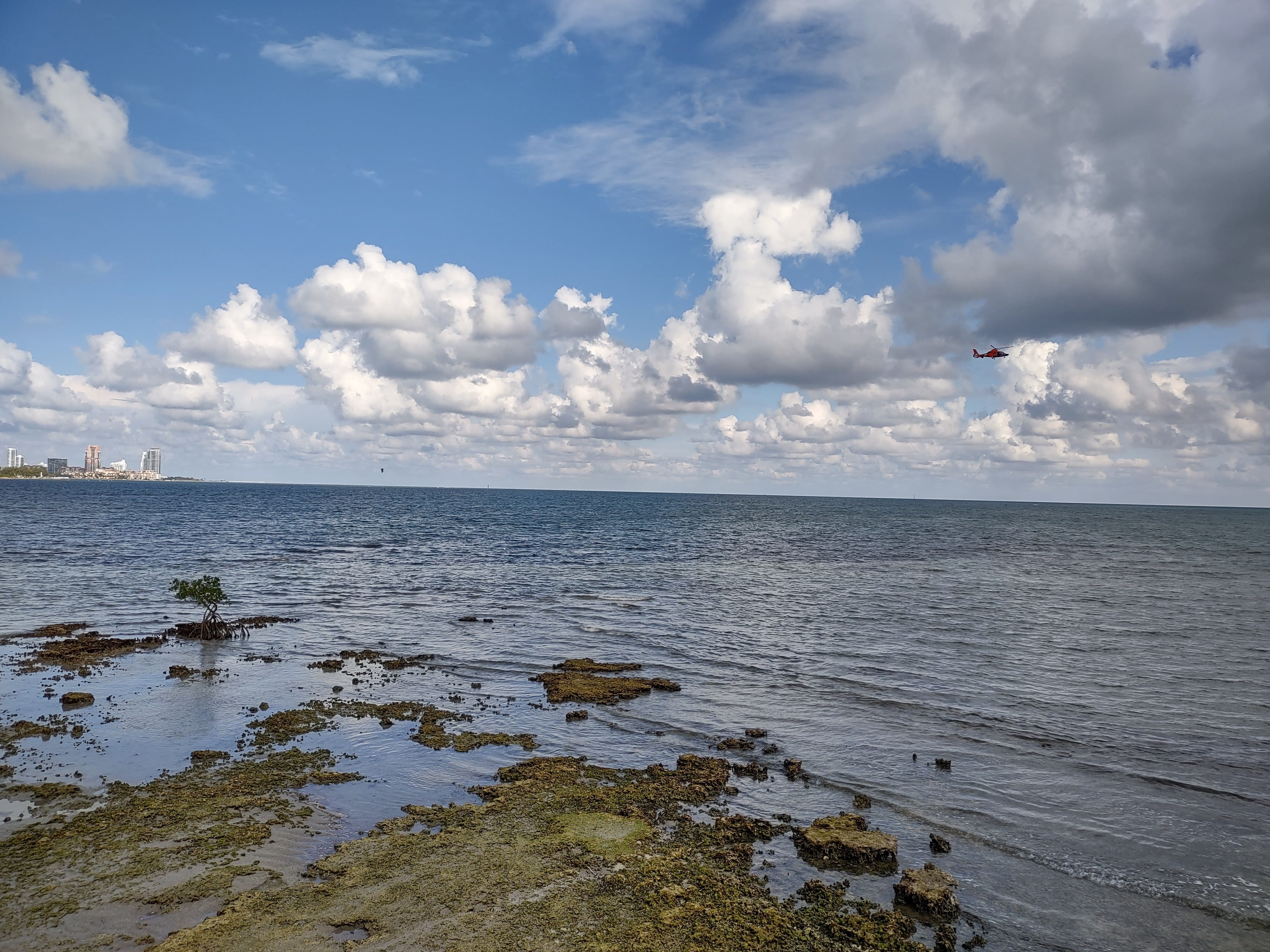 We'd booked kite surfing lessons in the afternoon at 2 pm on Key Biscayne. Around noon, we left the AirBnb where we were staying and biked across the causeway. There were nice wide bike lanes along the route and multi-use paths running parallel for long stretches as well. It pretty exciting to see all the activity with lots of people pulling into parking lots for beachs along the causeway and tons of bikers/hikers active on the trails. We veered off onto a path through the woods and reached a nice look out point with a view of some fossilized coral and Miami Beach far off in the distance. We could also see a kite boarder slowly work his way from the limit of our vision to the right to the shores far to our left before swinging around and heading back.