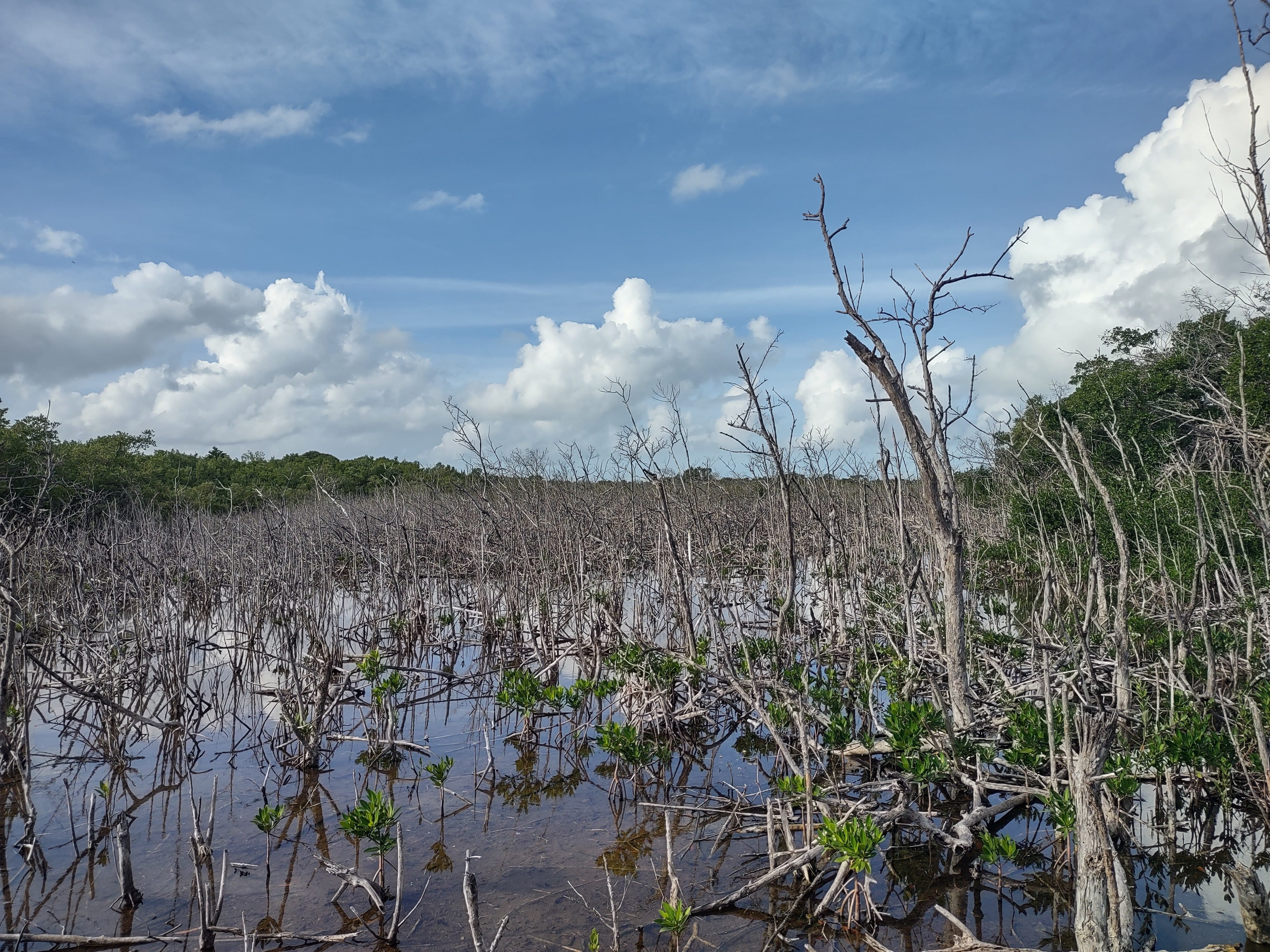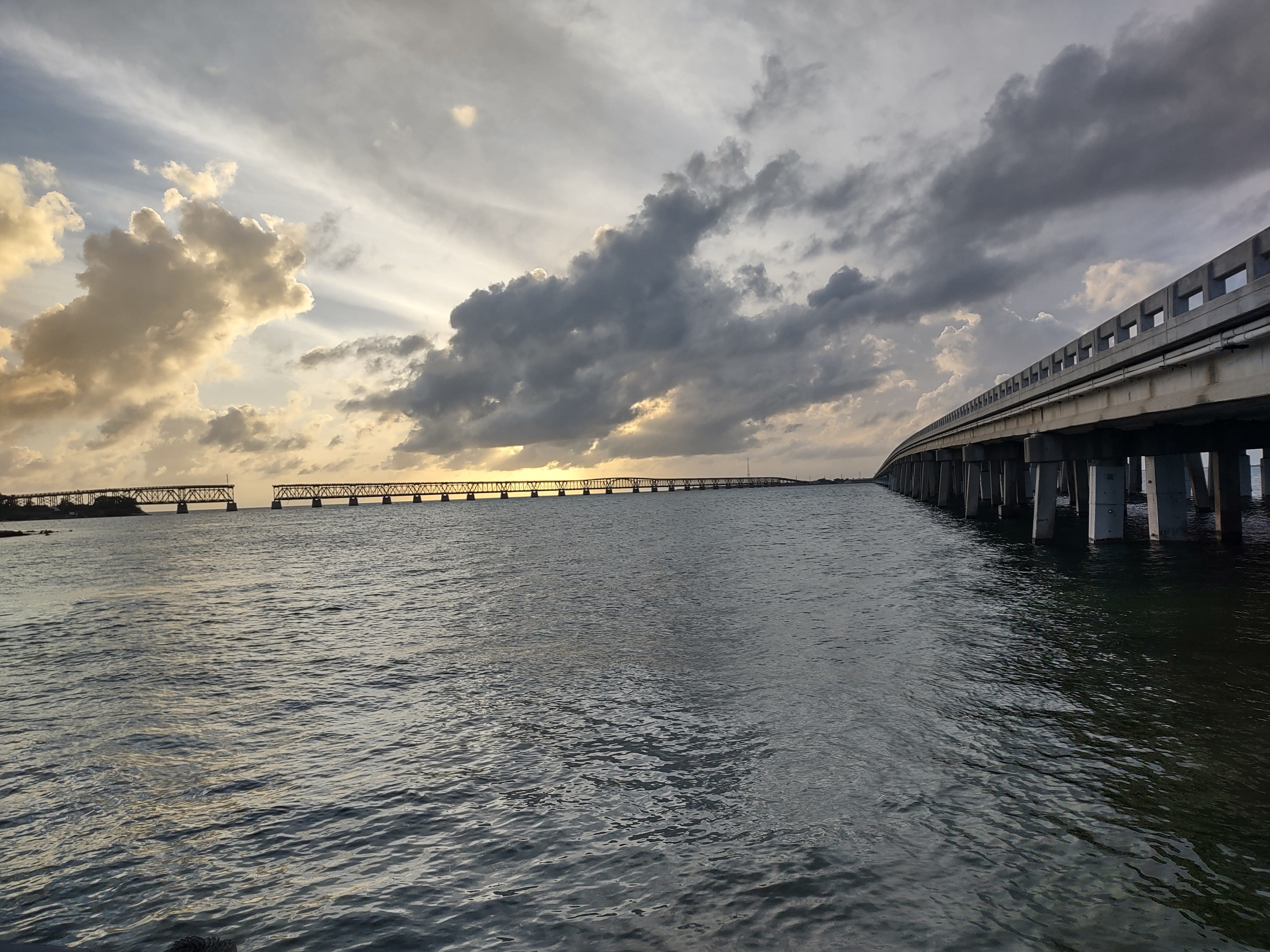 We arrived at Bahia Honda just a bit before sundown. En route to our campsite, we noticed warnings about crocodiles in the area. We'd just read about how rare they are earlier in the nature center! We never ended up seeing any, but it was still exciting. The campsite was right on the water and had a bit of a swamp smell to it. The biting no-see-um flies were absolutely brutal. We set up the tent, quickly ate dinner and went to bed. It was a hot and sticky night interrupted by a couple periods of heavy rain.