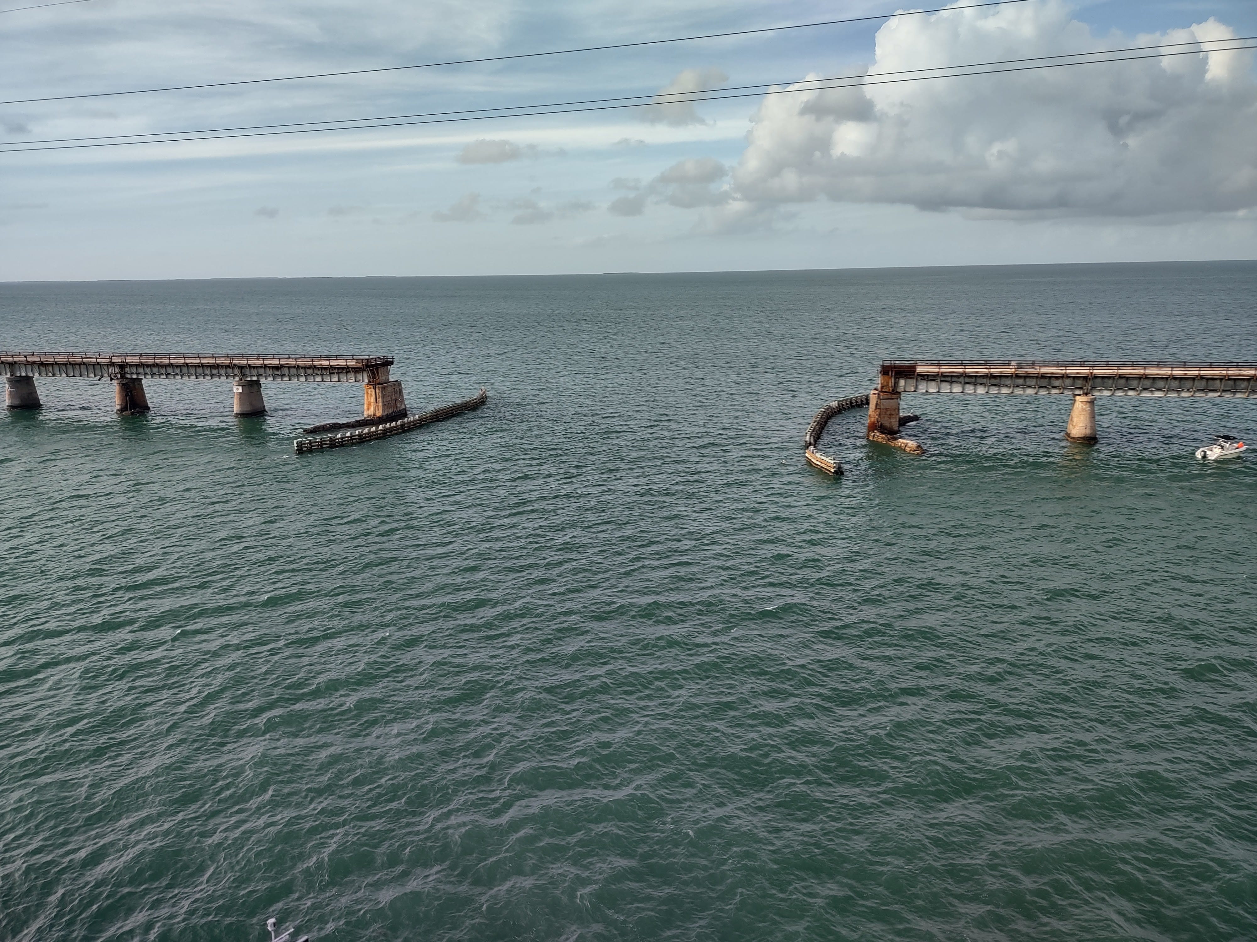 After the nature center, we set out towards our campground for the night. The rest of today's ride was predominantly on the seven mile bridge. We'd been warned about it earlier in the day at a local bike shop while picking up an extra pair of tubes for Camille, but with the nice wide shoulder, it really wasn't too bad. It was a little disappointing looking to our right though and seeing the old rail bridge running parallel, with only a couple sections left to be finished. Hopefully they will repair those sections someday and make a completely separated bike way.